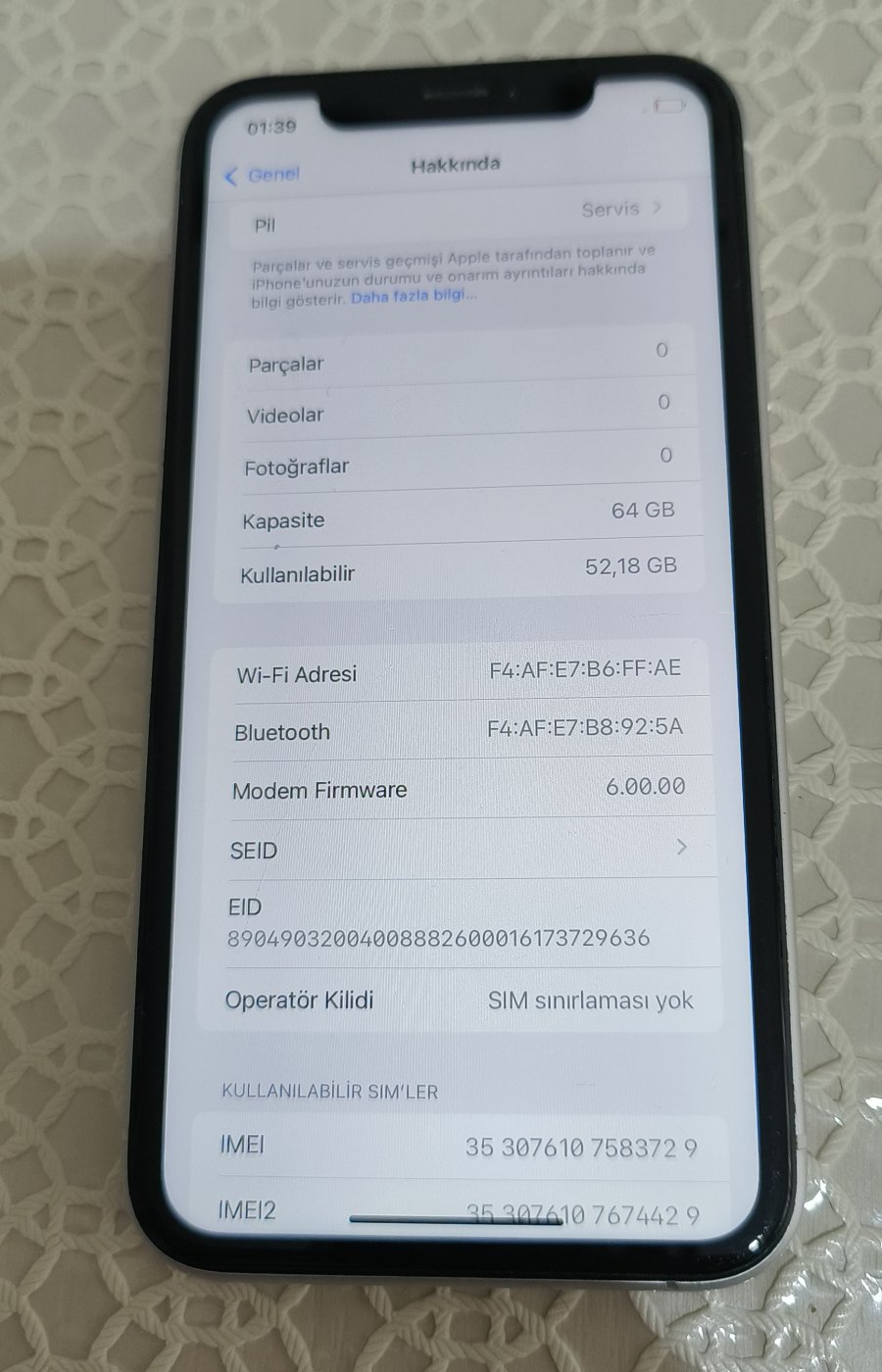 | Dahili Hafıza | 64 GB |
