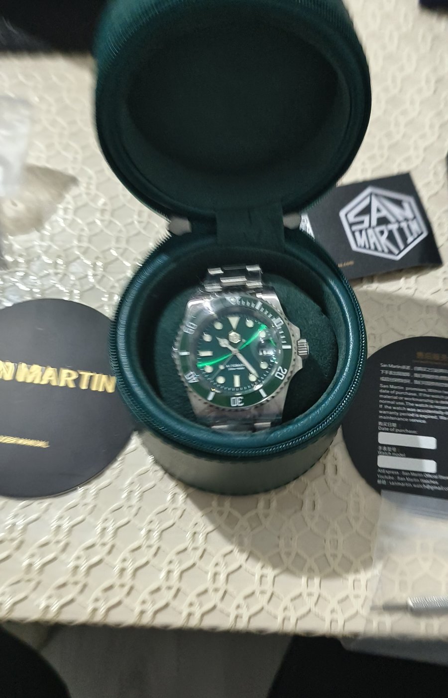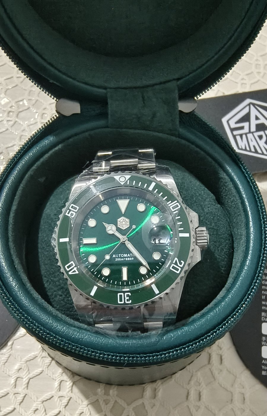 Yeşil parlak kadrana sahiptir. 200 metre su geçirmezlik. Safir kristal cam ve yansıma önleyici AR kaplama. Zaman tutması mükemmel NH35 mekanizma.